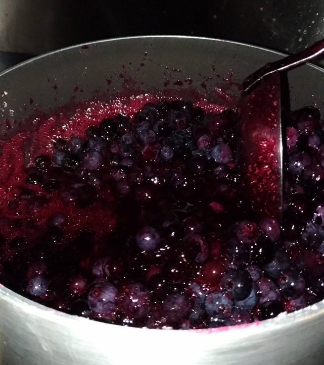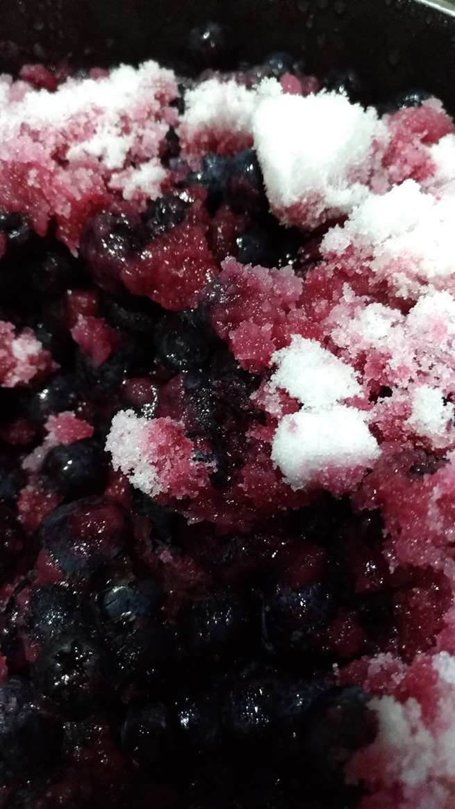 いつものように”ジャム”というよりブルーベリーソースを作るのですが、砂糖は大分少なめでも十分甘い仕上がりになりました。